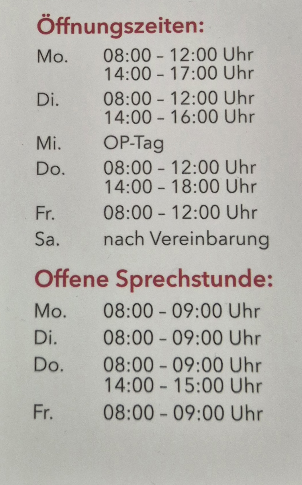 Dienstag 08:00-12:00 und 14:-16:00 Uhr